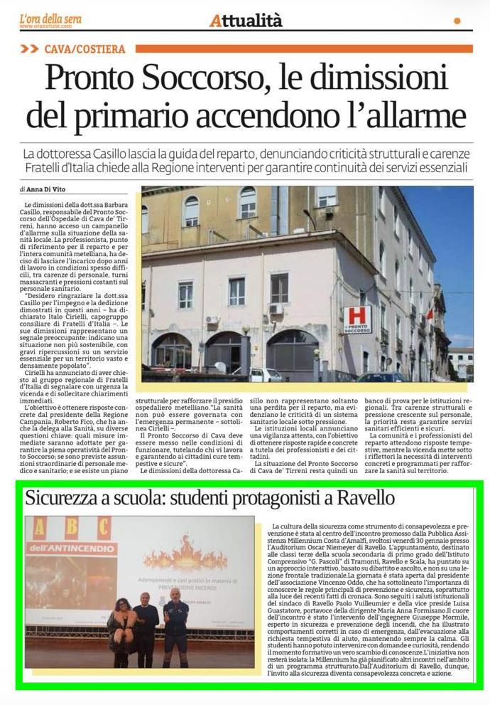 - AMO LIVE NEWS | Prevenzione e sicurezza, Millennium Costa d’Amalfi incontra gli studenti a Ravello