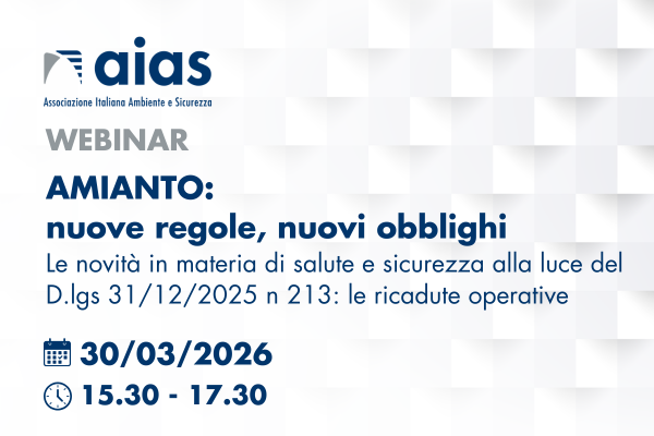 WEBINAR | Amianto: nuove regole, nuovi obblighi - Le novità in materia di salute e sicurezza alla luce del D.lgs 31/12/2025 n 213: le ricadute operative